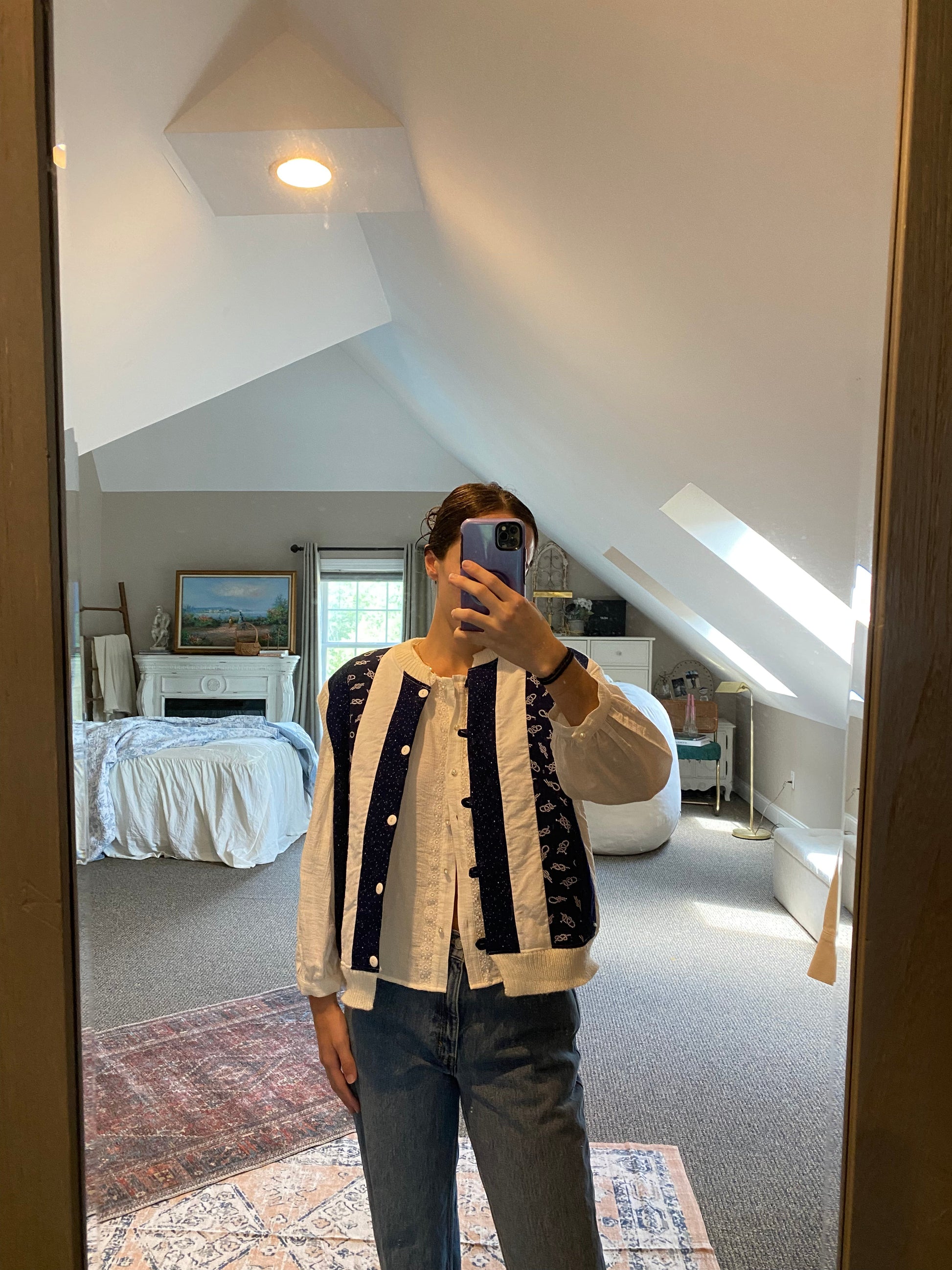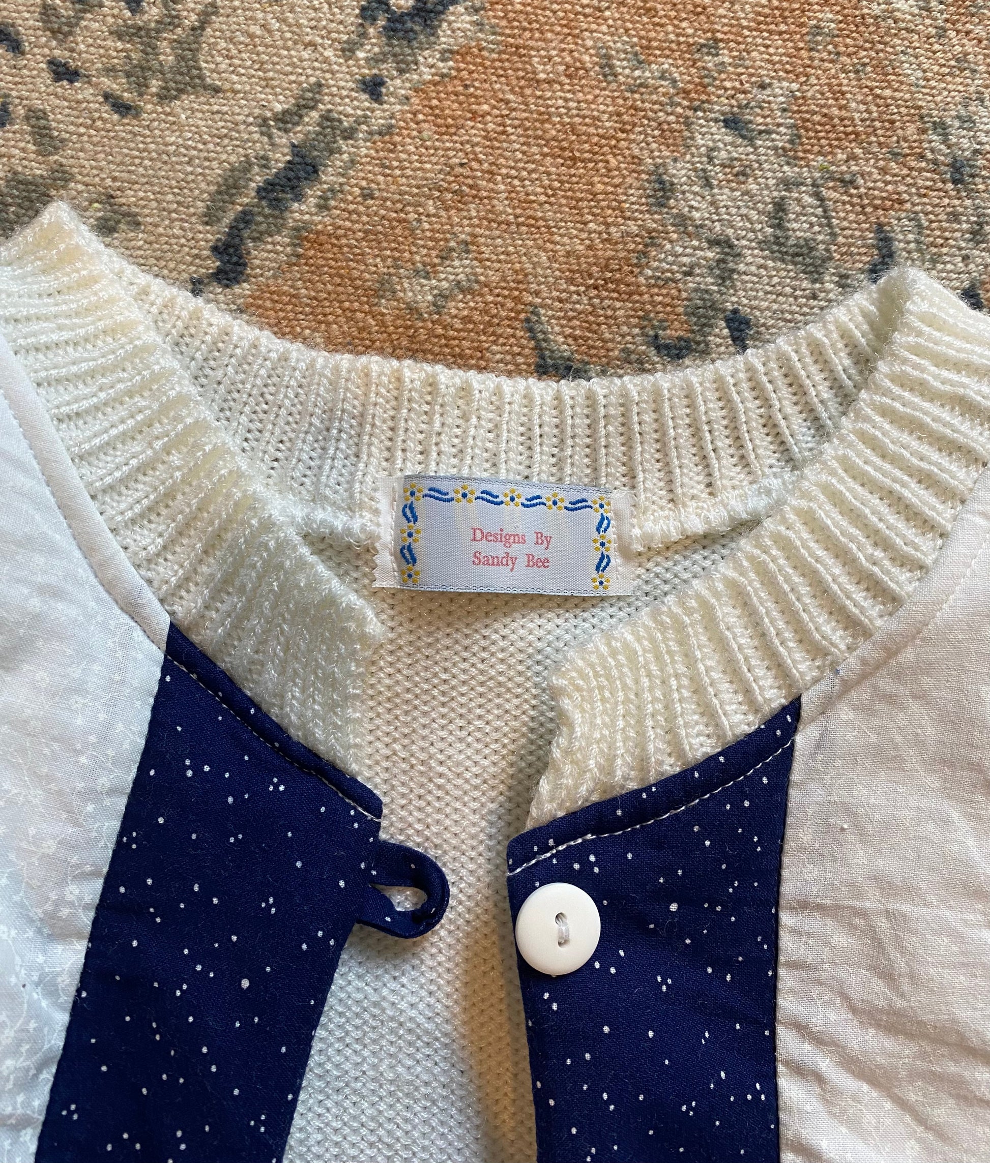 This detailed vest does have two small stains in the front.
