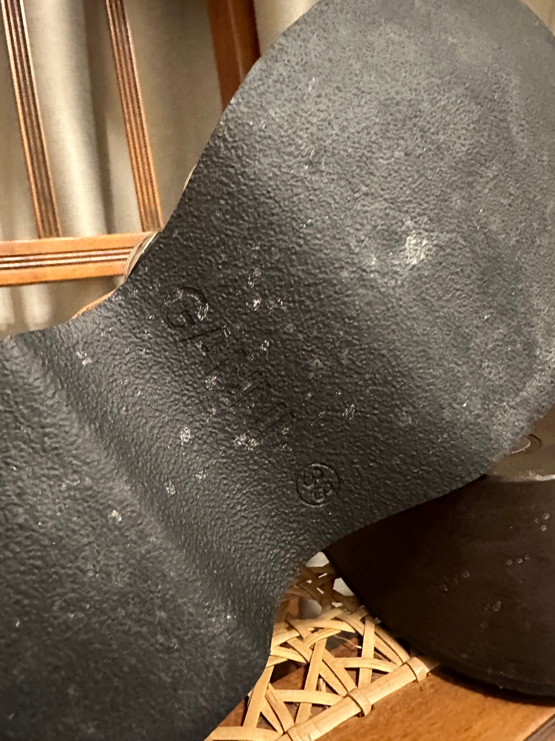 Upper: calfskin. Sole: wood, rubber.
