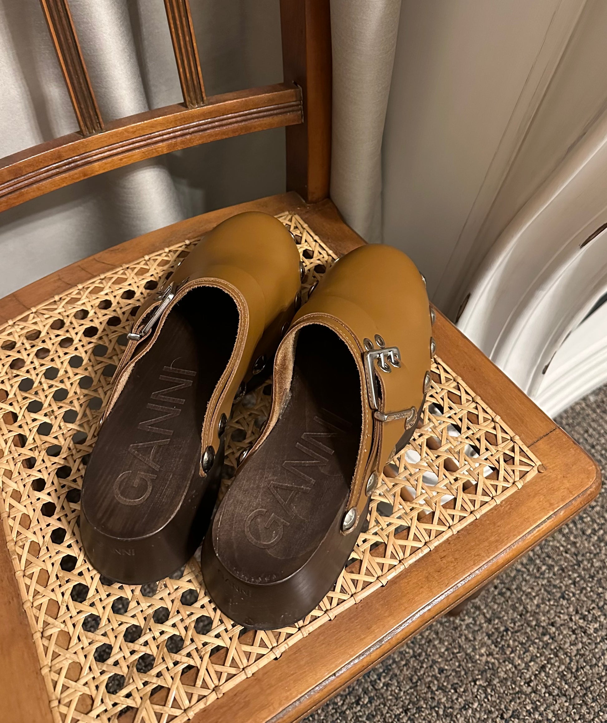 Ganni Brown Studded Clogs