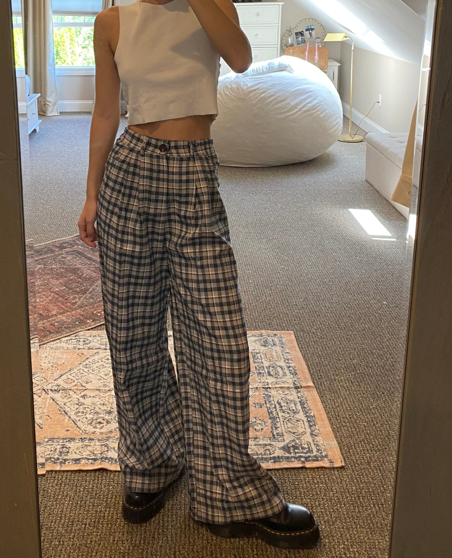 Plaid Wide Leg Pants