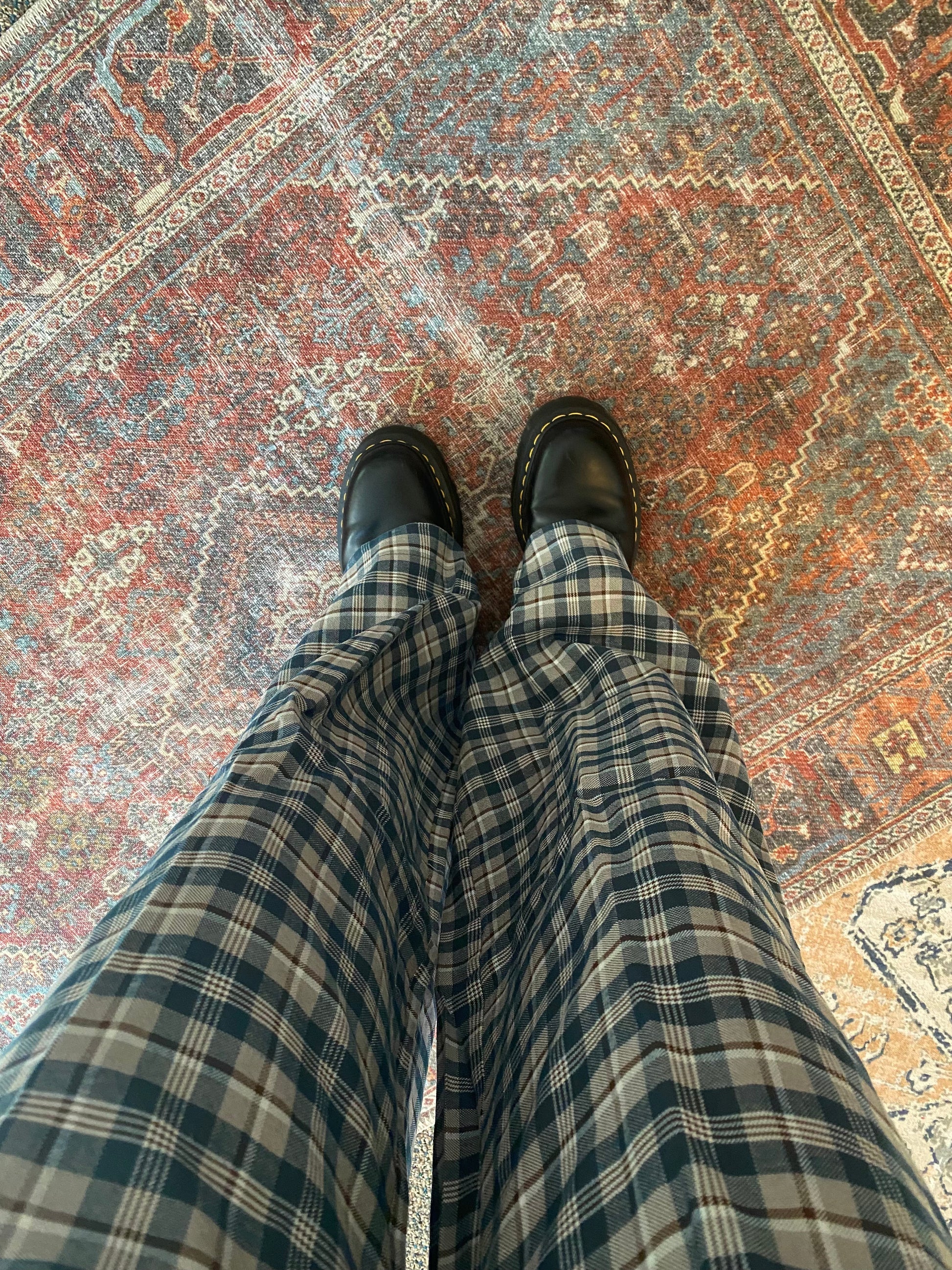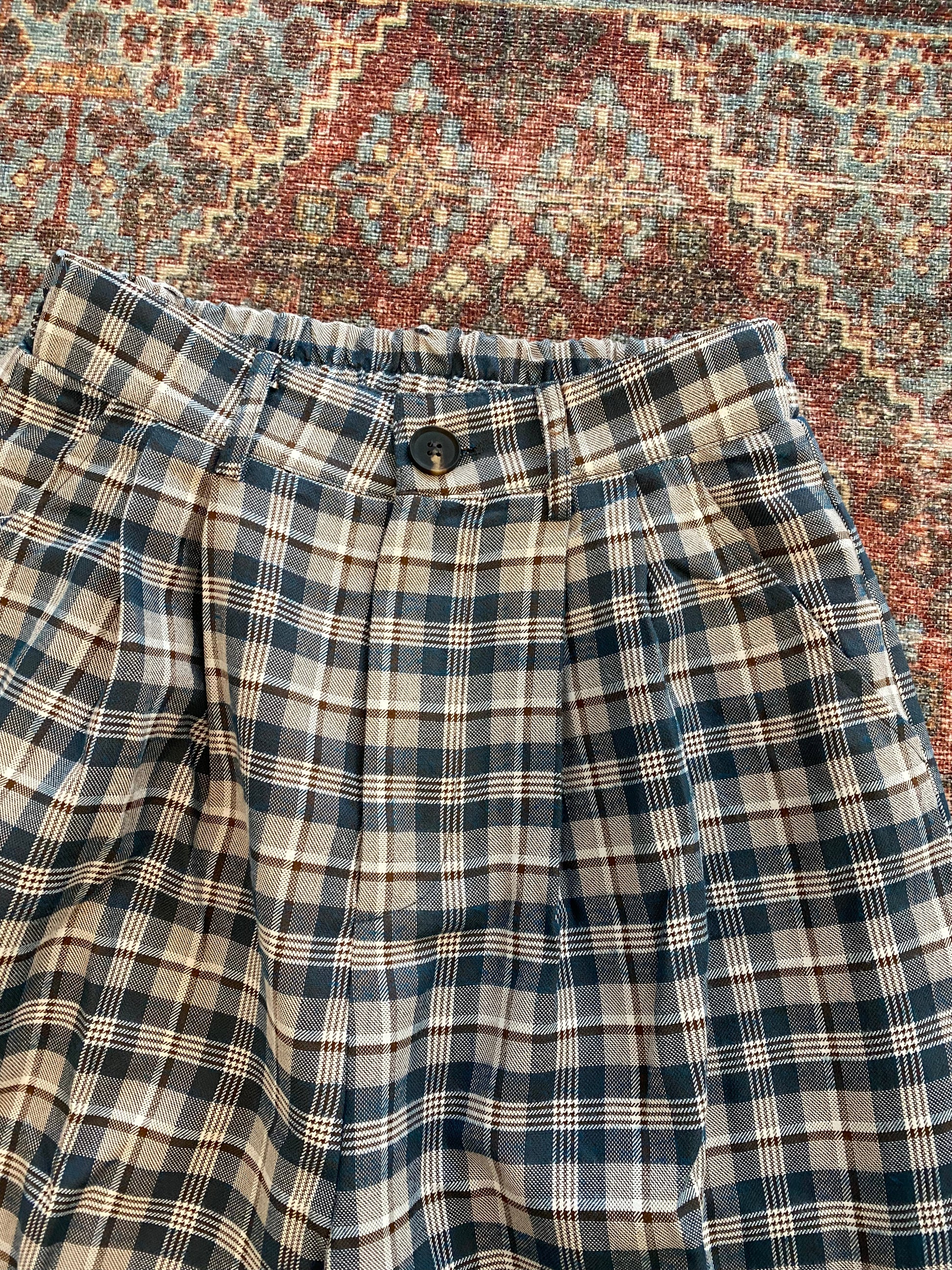 Blue Plaid Wide Legged Pants