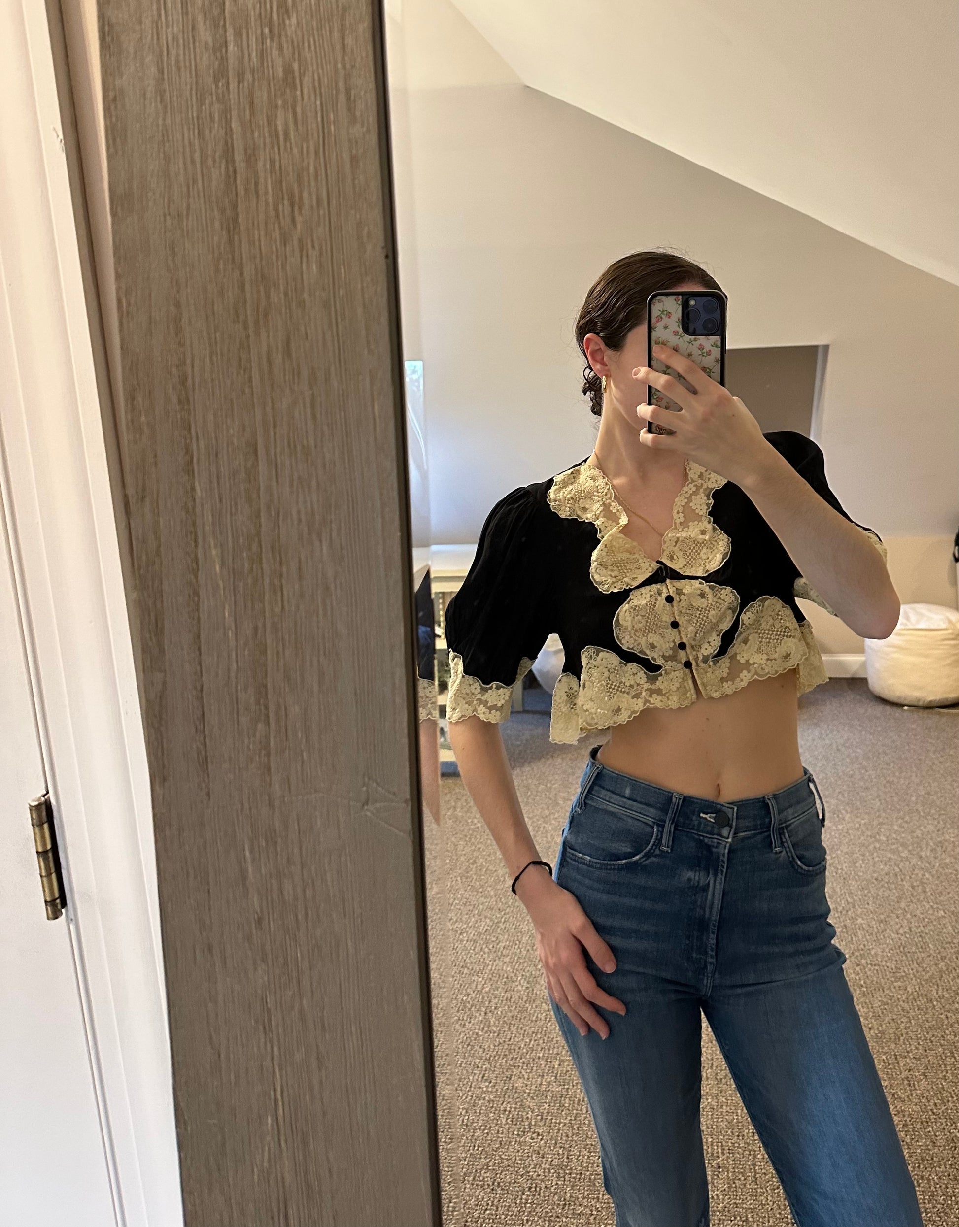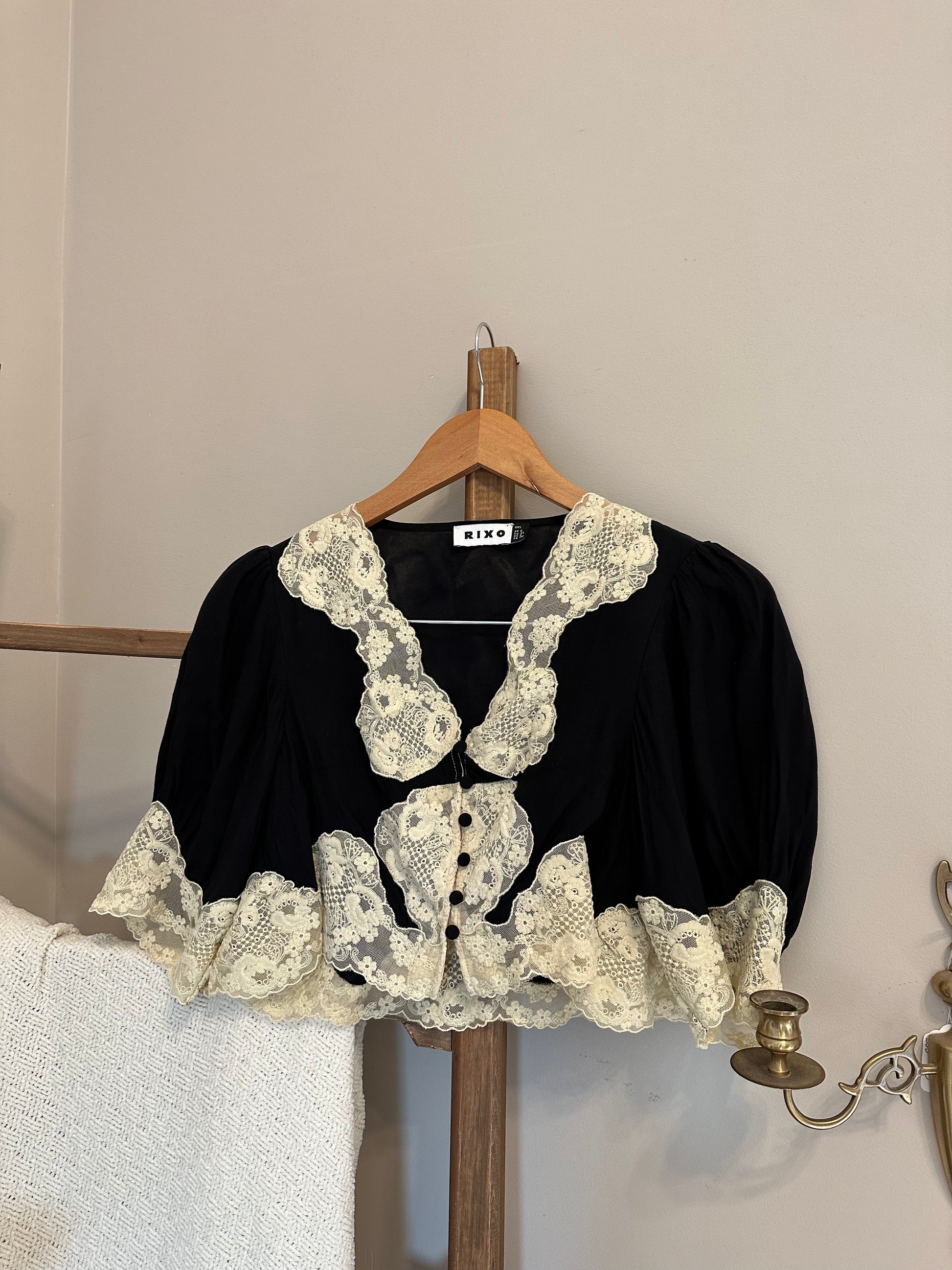 RIXO Slip Top with Lace Trim