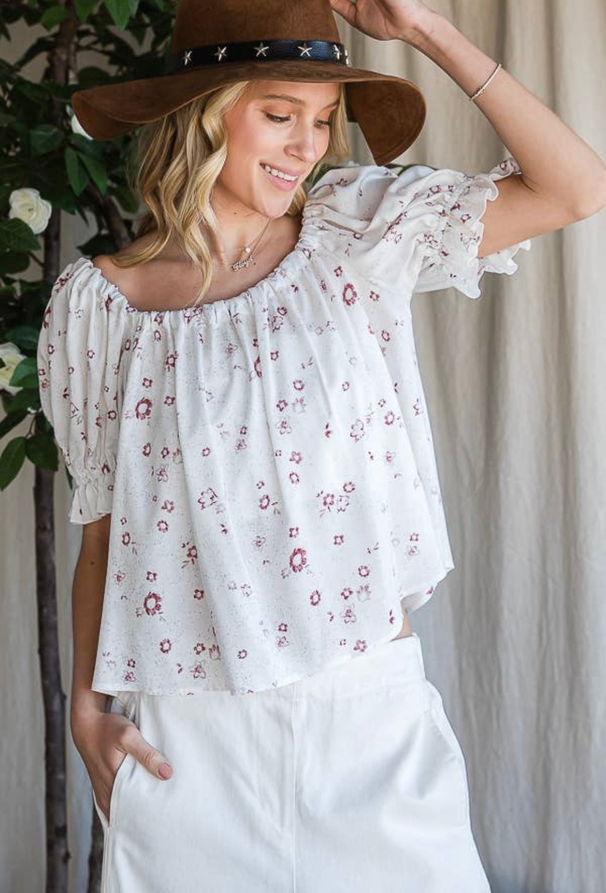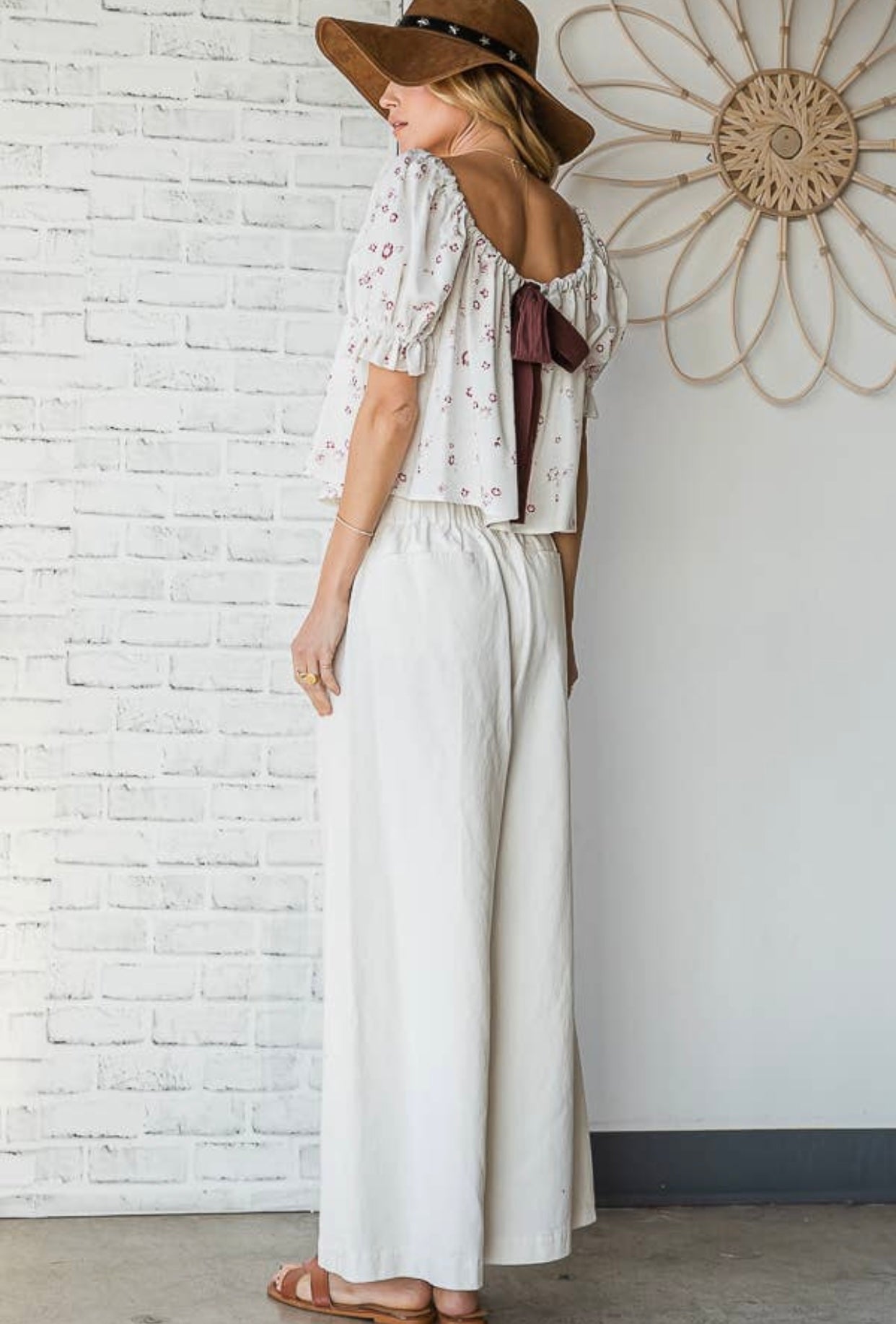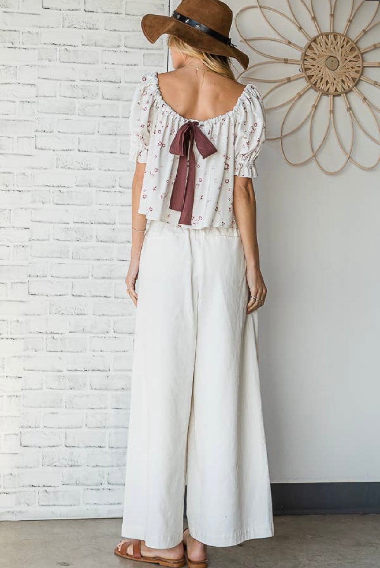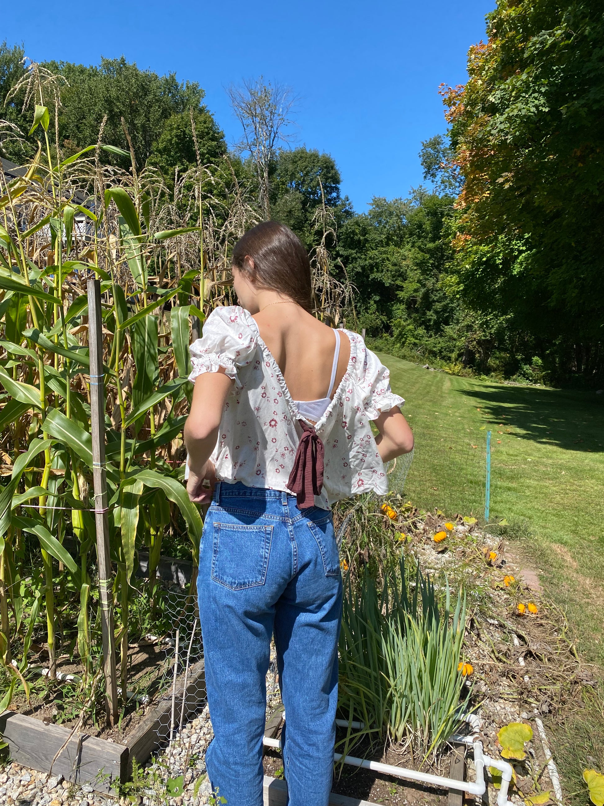 Floral Ribbon Tie Back Top