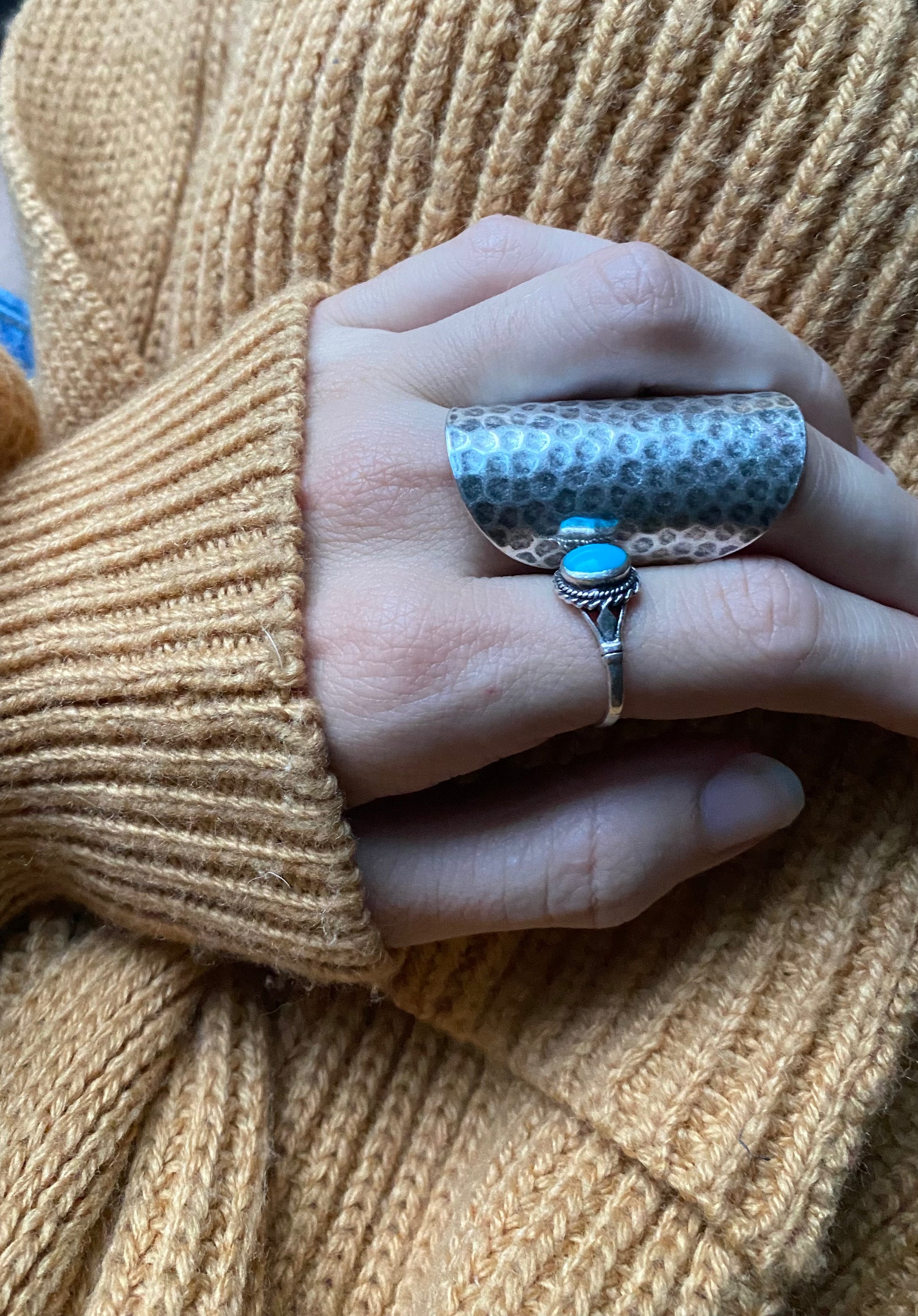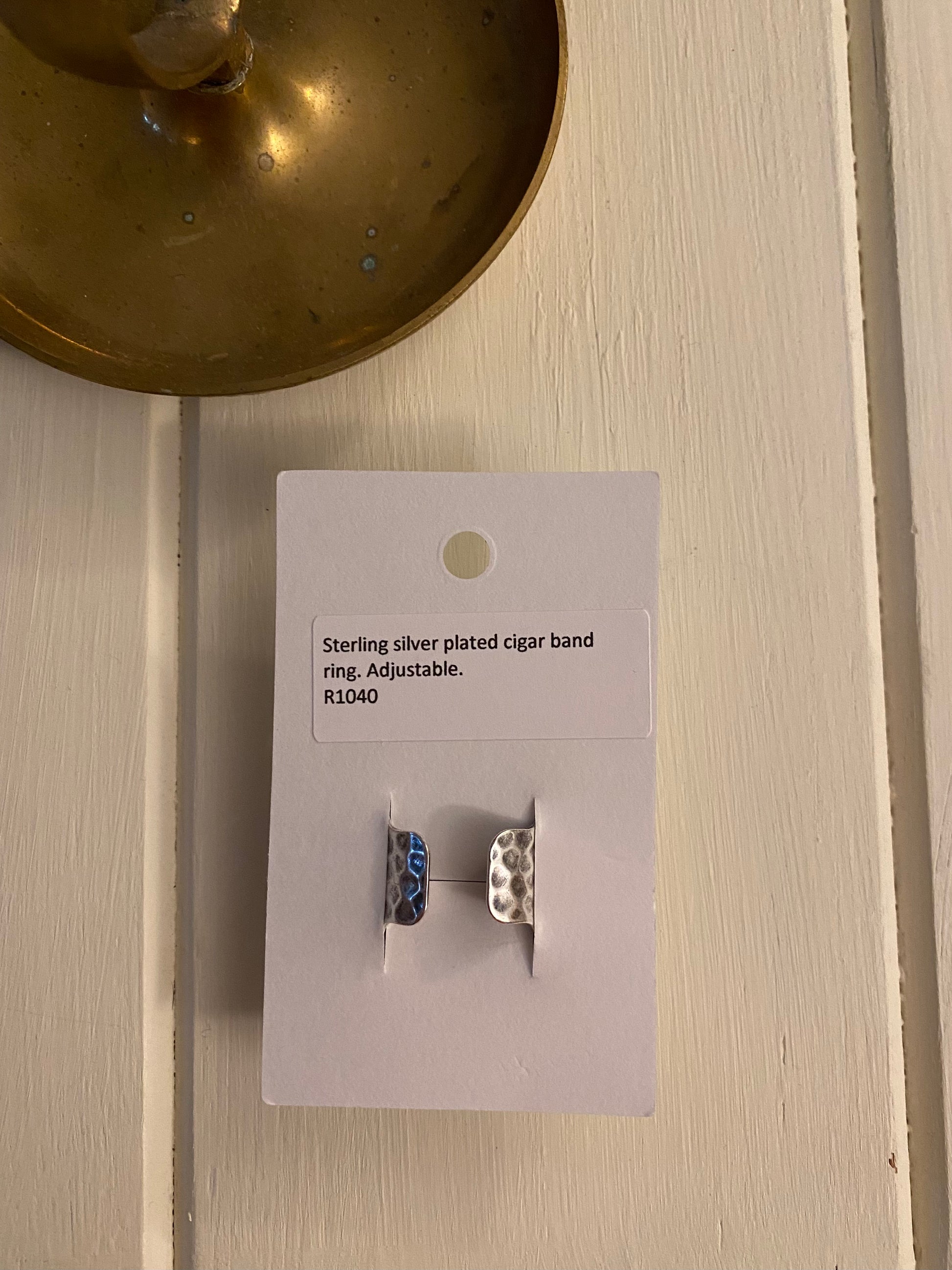Silver hammered cigar band ring.